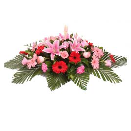 白百合,香槟玫瑰。 [包装]:专用花泥底托,散尾叶,栀子叶等搭配。自营