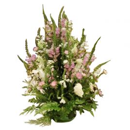 立体台花、桌花:粉色金鱼草16枝,高山羊齿叶,专用底托花泥插花。自营 -