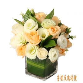 款式: 香槟玫瑰桔梗:香槟玫瑰,洋桔梗,栀子叶,相思梅,玻璃花瓶插花。 香槟玫瑰绣球:香槟玫自营 -