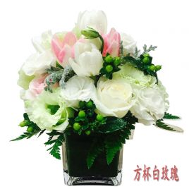 款式: 方杯白玫瑰:白玫瑰,郁金香(换机替换)洋桔梗,绿豆豆,高山羊齿叶,玻璃花瓶插花。 自营 -