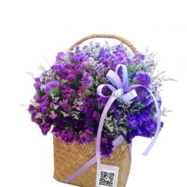 [材料]:勿忘我满插,情人草搭配。 [包装]:竹编花篮精美制作。 [备注]:此款商品花材特殊仅自营 -