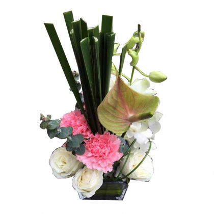 方杯前台花-温暖心底 小桌花会议展会吧桌花小花瓶鲜花方杯鲜花酒店插花公司插花