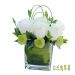 白玫瑰翠菊:白玫瑰,青桔梗,绿雏菊,玻璃花瓶插花。