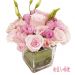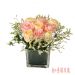 粉佳人+桔梗:粉佳人玫瑰,粉色洋桔梗,玻璃花瓶插花。