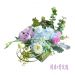 白玫瑰+绣球:雪山白玫瑰,天蓝色绣球,淡紫色洋桔梗,尤加利叶,玻璃花瓶插花。