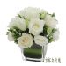 方杯白玫瑰:雪山白玫瑰,洋桔梗,白色石竹梅,玻璃花瓶插花。