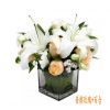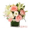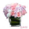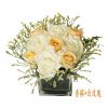 款式: 戴安娜+百合:戴安娜玫瑰,白色香水百合,洋桔梗,相思梅,栀子叶,玻璃花瓶插花。 香槟