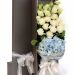 11枝白玫瑰或香槟玫瑰二选一,1把洋桔梗,绣球1枝,长礼盒包装。