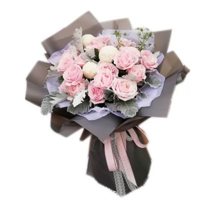 19枝粉雪山玫瑰花束
