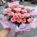 19枝戴安娜玫瑰花束,粉色雾面纸包装。