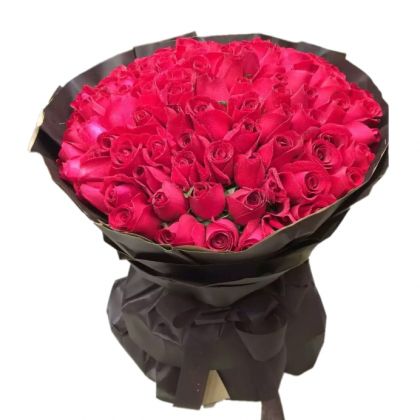 [材料]:99枝精选红玫瑰。 [包装]:咖啡色卡纸圆形精美包装,咖啡色丝带蝴蝶结束扎。