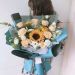 3枝向日葵,9枝香槟玫瑰,青色洋桔梗,尤加利