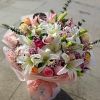 16朵白百合,10枝粉玫瑰,6朵香槟玫瑰,粉色满天星,尤加利