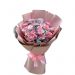 11枝粉色康乃馨,9枝粉玫瑰,银叶菊搭配,粉色满天星间插