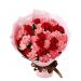 花材:12枝红色康乃馨,21枝粉色康乃馨,绿叶搭配。 包装:粉色网纹纸内衬,粉色欧雅纸精美包装,咖啡色缎带蝴蝶结装饰。