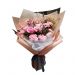 9枝粉色康乃馨,3枝粉玫瑰,1枝多头粉玫瑰,澳梅,黄英搭配