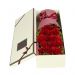 花材:19枝红色康乃馨,黄英搭配。 包装:深粉欧雅纸,酒红英文字母缎带蝴蝶结装饰,米色精美礼盒。