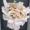 淡紫色玫瑰9枝,荔枝粉玫瑰3枝,洋桔梗,翠珠搭配。