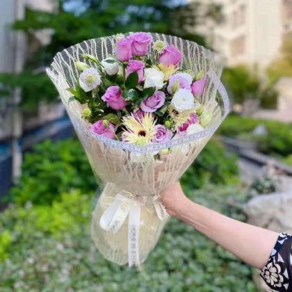 紫玫瑰洋桔梗花束送女友老婆闺蜜朋友生日情人节七夕节520