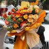 香槟玫瑰9枝,辉煌玫瑰10枝,咖啡玫瑰10枝,尤加利搭配。