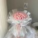 花材:粉玫瑰21枝。 包装:白色雪梨纸,白色公主纱,白色欧雅纸精美包装,粉色丝带装饰。