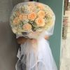 12枝香槟玫瑰白色满天星搭配鹅黄色欧雅纸包装