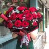 19枝红玫瑰尤加利粉满天星搭配枣红色欧雅纸包装