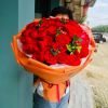 29枝红玫瑰+红豆搭配,橘色手揉纸包装。