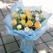 香槟玫瑰9枝,白色洋桔梗,尤加利,洋甘菊,蓝色雾面纸包装。