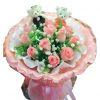 [材料]:11枝戴安娜玫瑰,卡通2只,黄莺满天星丰满。 [包装]:白色+粉色卷边纸多层圆形包装,粉