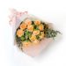 【花材】:香槟玫瑰11枝,绿色小菊、尤加利、叶上花等搭配。