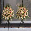 开业花篮-香槟玫瑰粉玫瑰青色桔梗金鱼草 1只