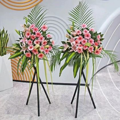 开业花篮-粉色扶郎粉百合绿叶 1只