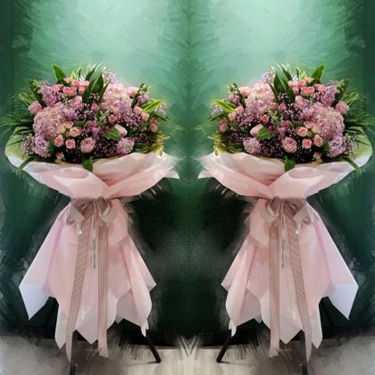 开业花篮-粉绣球粉玫瑰粉满天星绿叶 1只