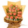 [材料]:19枝粉玫瑰,黄英,满天星搭配。 [包装]:黄色牛皮纸单面精美包装,拉菲草束扎。