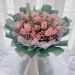 【花材】:粉玫瑰27枝,粉色满天星,尤加利搭配。