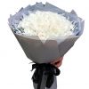 [材料]:33枝白玫瑰,银叶菊搭配。 [包装]:灰色雾面纸圆形包装,黑色细丝带束扎。