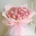 【花材】:粉雪山玫瑰19枝,粉色满天星搭配。 【包装】:粉色雾面纸包装,白色丝带装饰。