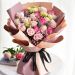 雪山粉玫瑰13枝,玫红玫瑰6枝,青色洋桔梗,粉色满天星,尤加利搭配。