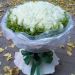 [材料]:66枝白玫瑰,黄莺外围 [包装]:白色瓦楞纸内衬,同色卷边纸外围托底,墨绿色无纺带花结束