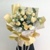 香槟玫瑰18枝,白色洋桔梗,尤加利搭配。