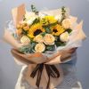 向日葵3枝,香槟玫瑰9枝,多头玫瑰1枝,尤加利搭配。