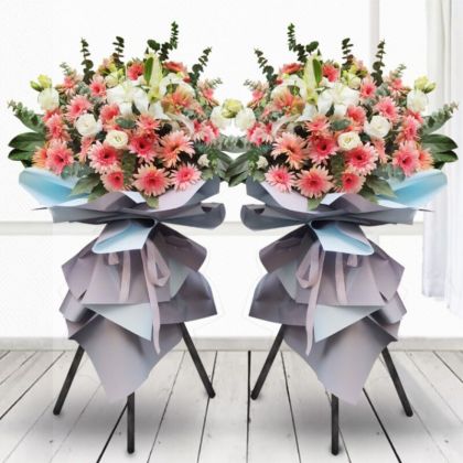 爆款-开业花篮粉扶郎白百合 花篮1个