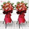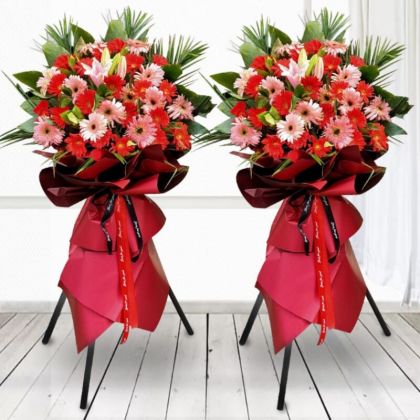 爆款-开业花篮红粉扶郎粉百合绿叶 花篮1个