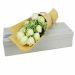 [材料]:白玫瑰11枝。叶上花搭配。 [包装]:牛皮色纸包扎,长礼盒精致包装。