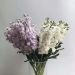 【花材】:紫色紫罗兰5枝,白色紫罗兰5枝。