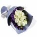 [材料]:白玫瑰11枝,勿忘我搭配。 [包装]:蓝色雾面纸精美包装,乳白色丝带系扎。