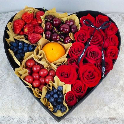 红玫瑰15枝,草莓,蓝莓,圣女果,脐橙,车厘子