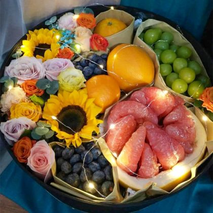 向日葵紫玫瑰鲜花水果礼盒中秋节感恩节国庆节端午节春节父亲节重阳节
