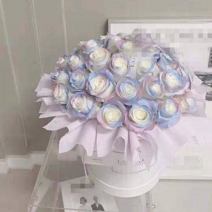 【花材】:39枝碎冰兰玫瑰,粉色包装围边。 【包装】:乳白色抱抱桶礼盒定制。